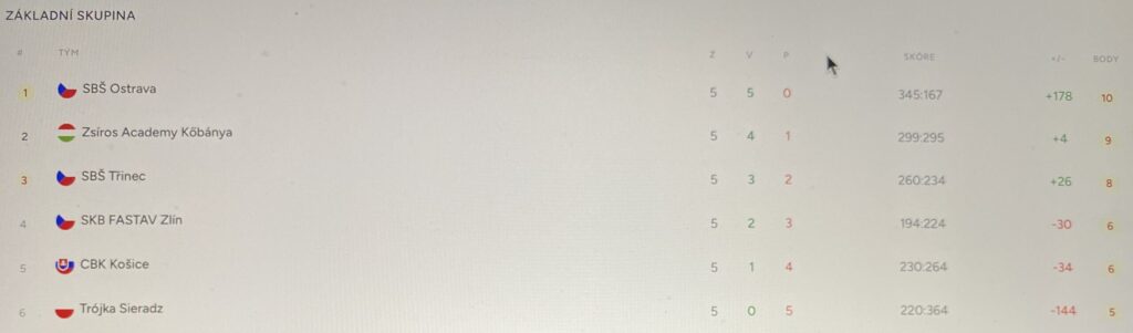 CBK Košice – SBŠ Ostrava (ČR) 35:58